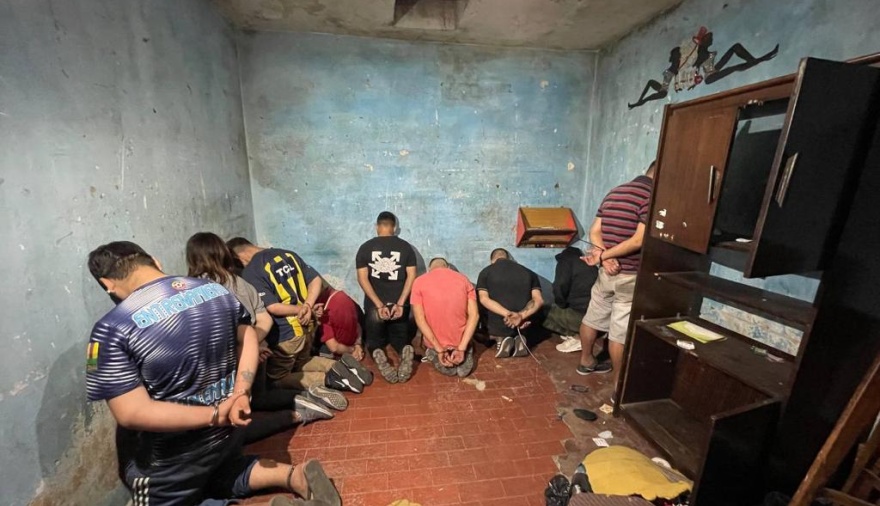 En ese marco, se dispuso la realización de diversos allanamientos en el distrito en donde se detuvo a los integrantes de la banda los cuales se dedicaban a la producción, distribución y venta de estupefacientes. A los mismos se les secuestró más de un kilo de clorhidrato de cocaína fraccionada para su comercialización, plantas de marihuana y ladrillos de la misma destinados a la venta. Asimismo, se logró incautar cuatro armas de fuego de distintos calibres, municiones, un chaleco antibalas de la policía y una moto con pedido de secuestro.