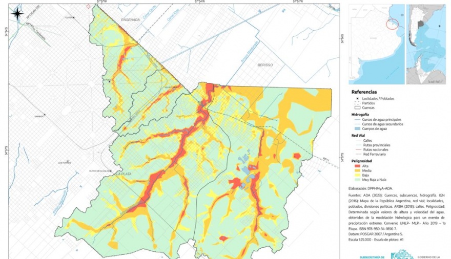 El Gobierno bonaerense publicó los Mapas de Peligrosidad de diferentes cuencas de la provincia de Buenos Aires, con el objetivo de generar percepción del riesgo a la comunidad.