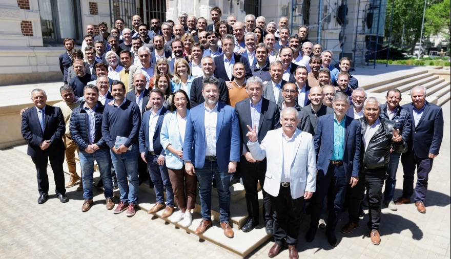 El gobernador Axel Kicillof y el candidato a presidente Sergio Massa se reunieron este miércoles con los intendentes y las intendentas electas de Unión por la Patria en la provincia de Buenos Aires. Fue en el Salón Dorado junto a la vicegobernadora Verónica Magario; el jefe de Asesores, Carlos Bianco; la ministra de Gobierno, Cristina Álvarez Rodríguez; y los ministros de Desarrollo de la Comunidad, Andrés Larroque; y de Justicia y Derechos Humanos y jefe comunal electo de La Plata, Julio Alak.