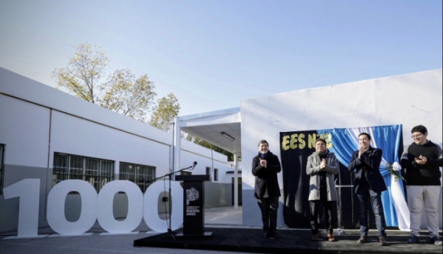El gobernador de la provincia de Buenos Aires, Axel Kicillof, encabezó este jueves en Malvinas Argentinas el acto en el que se celebró un nuevo hito en materia de infraestructura escolar: la inauguración del aula Nº 1.000 producto de la ampliación de establecimientos educativos. Fue en la Escuela Secundaria N°12 de Los Polvorines, junto al director general de Cultura y Educación, Alberto Sileoni; el intendente local Leonardo Nardini; y el director de la institución, Leandro González.