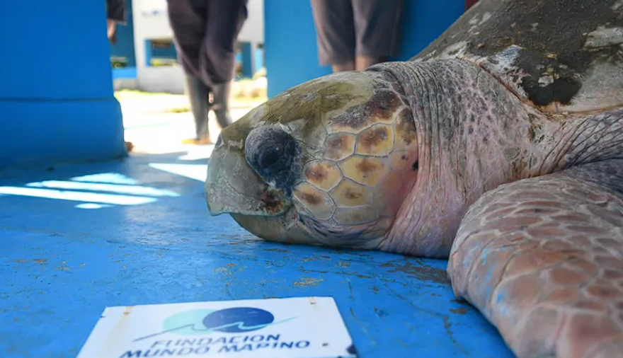 Según detallaron, se trató de un animal macho y adulto. Hasta ahora fue el animal vivo más grande de esta especie que ingresó a la Fundación Mundo Marino, dado que registró un peso de 130 kilos y un caparazón de más de 1 metro de longitud.